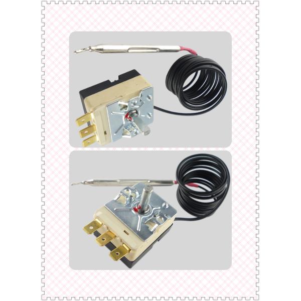 Changsheng WQS-I series bulb & capillary thermostats are factory calibrated to a predetermined temperature range. This design offers a changeover thermal switch and an optional auxiliary switch that is useful for activation of an alarm or cooling fan. The principles of operation allow this design to be surprisingly cost effective and a leading choice for use in many applications where precision sensing is required while remaining on a tight budget. When temperature rises, the internal fluid located within the bulb expands through a capillary tube to an expandable diaphragm that is configured within the remote thermostat body. This diaphragm assembly activates the electrical contacts at the calibrated temperature set point. The WY-I series is available with a front auxiliary switch as optional.